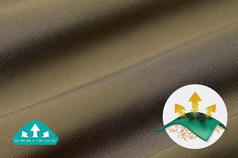 - Omni-Wick™ keeps you dry and cool by pulling moisture to the fabric’s surface to evaporate, delivering fast-drying, next-to skin comfort in the heat